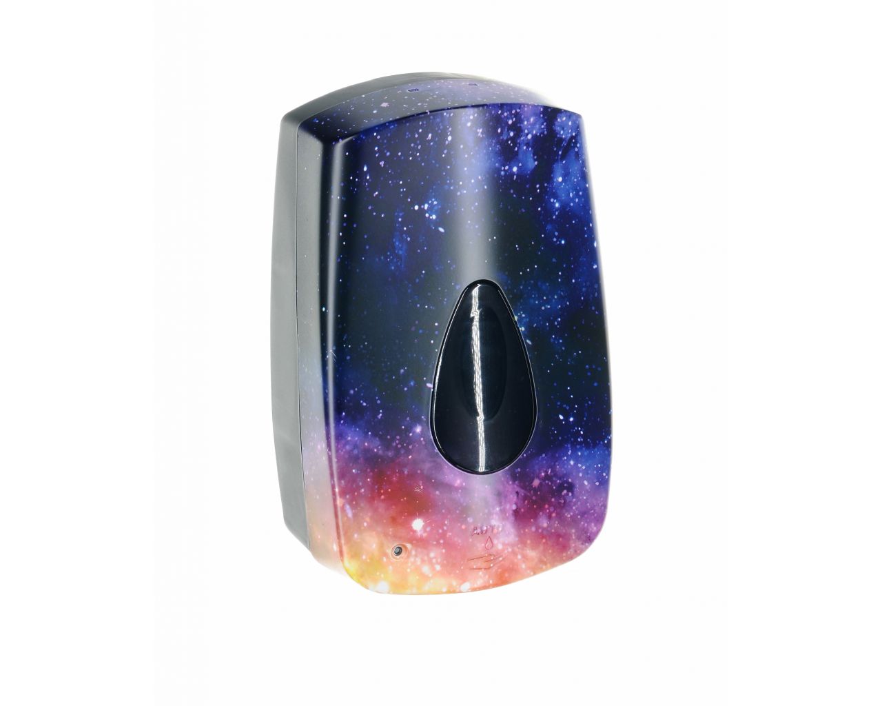 Mydło dozowane automatycznie w postaci niebywale delikatnej piany. Pojemność wymiennych wkładów 700 g – ponad 2000 porcji piany. Dozownik uruchamiany automatycznie czujnikiem zbliżeniowym, zasilany 4 bateriami R14 (opakowanie nie zawiera baterii). Diodowy wskaźnik stanu dozownika (zielony-gotowość do pracy, pomarańczowy-niedomknięta pokrywa, czerwony-wymienić baterię). Dostosowany do użytkowania z mydłami w pianie. Dozownik wykonany z wysokiej jakości, bardzo wytrzymałego tworzywa ABS. Odporny na działanie UV. Zamykany na kluczyk.