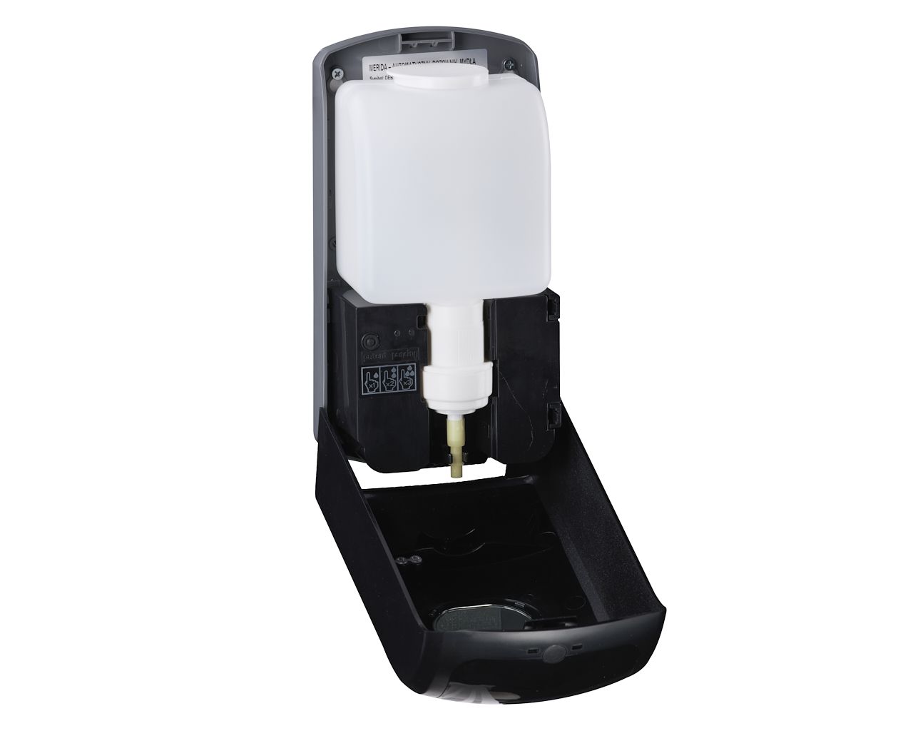 Bezdotykowy automatyczny dozownik mydła w pianieMERIDA ONE na jednorazowe wkłady 1000 g, tworzywo ABSczarny