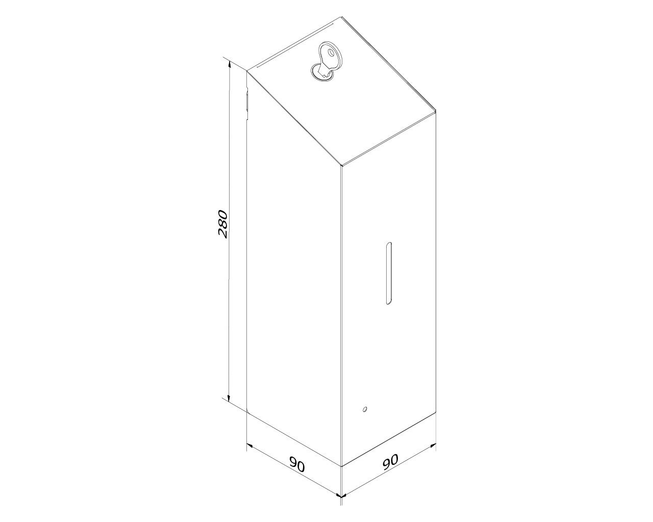 Bezdotykowy automatyczny dozownik mydła w pianie wykonany ze stali nierdzewnej szczotkowanej (matowej) z jednego wkładu, można uzyskać ponad 2000 porcji mydła w pianie. Zabezpieczony trwałym stalowym zamkiem bębenkowym. Zamek zlicowany z powierzchnią urządzenia. Łączenia boków spawane i szlifowane. Urządzenie posiada niewidoczne zawiasy. Pojemność jednorazowego wkładu z mydłem 800 ml. Mydło dozowane automatycznie w postaci delikatnej piany. Dozownik uruchamiany bezdotykowo czujnikiem zbliżeniowym, zasilany 4 bateriami AA , baterie dołączone. Dozownik posiada diodowy wskaźnik: zielony – gotowość do pracy, czerwony – wymienić baterie. Urządzenie należy zamontować w odległości min. 200 mm od powierzchni blatu lub umywalki. Dozownik wyposażony jest w unikalny system programowania wielkości dozy podawanego mydła, użytkownik ma możliwość zaprogramowania następujących wielkości dozy: 0,4 ml, 2 x 0,4 ml lub 3 x 0,4 ml. Całkowita szczelność wkładu zabezpiecza przed skażeniem zawartości. Zamykany na kluczyk.