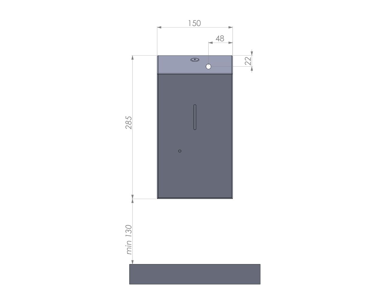 – dozownik należy zamontować w odległości min. 130 mm od powierzchni blatu lub umywalki