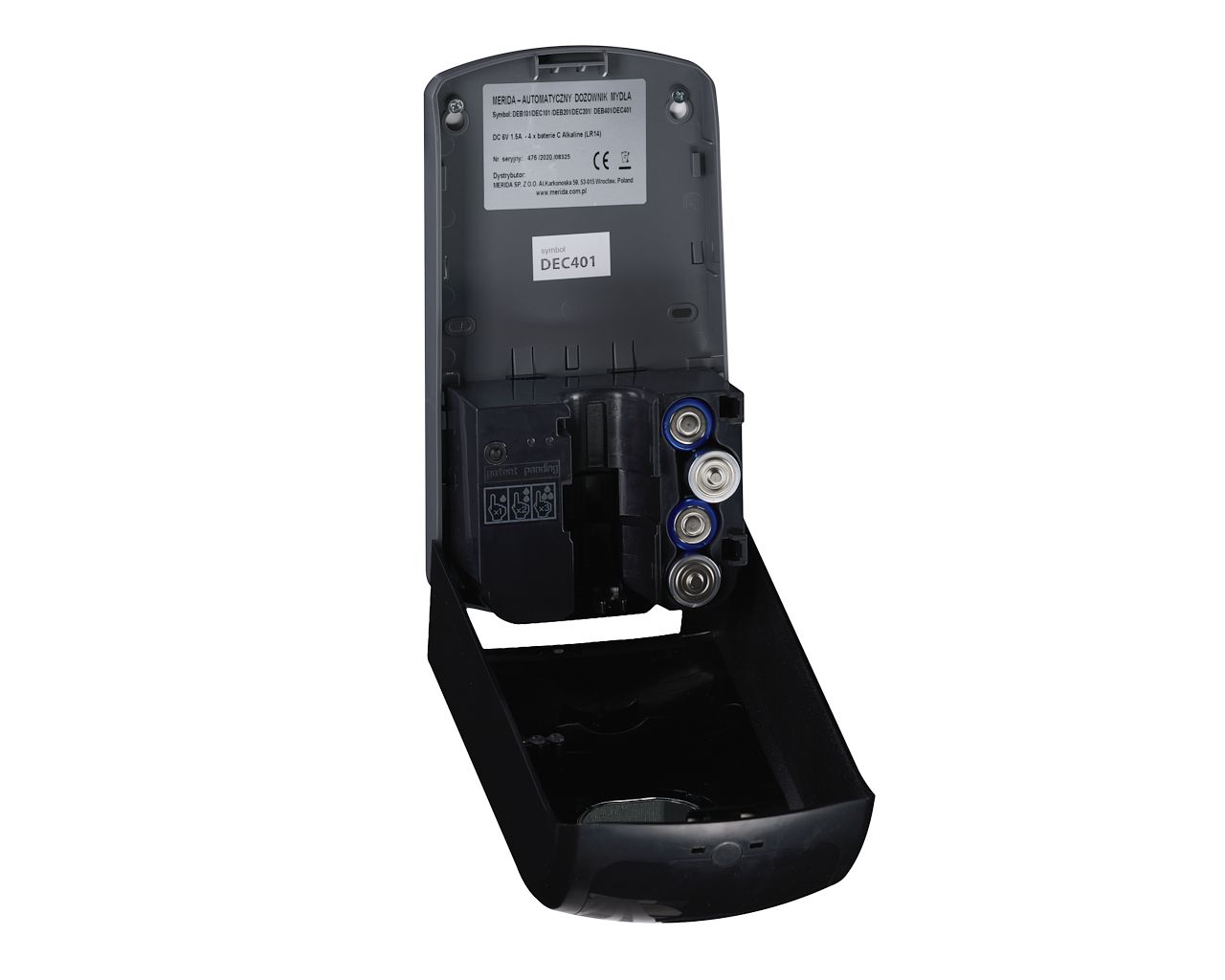 Bezdotykowy automatyczny dozownik mydła w pianieMERIDA ONE na jednorazowe wkłady 1000 g, tworzywo ABSczarnySymbol: DEC201295,00 zł
