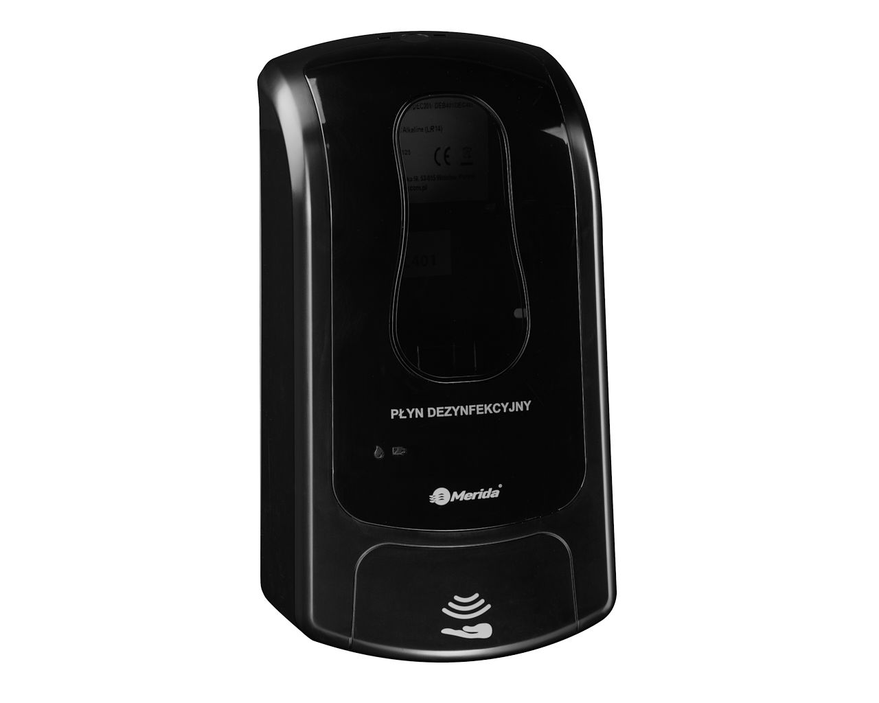 Bezdotykowy automatyczny dozownik płynu dezynfekcyjnego w sprayuMERIDA ONE na jednorazowe wkłady 1000 ml, tworzywo ABSczarny