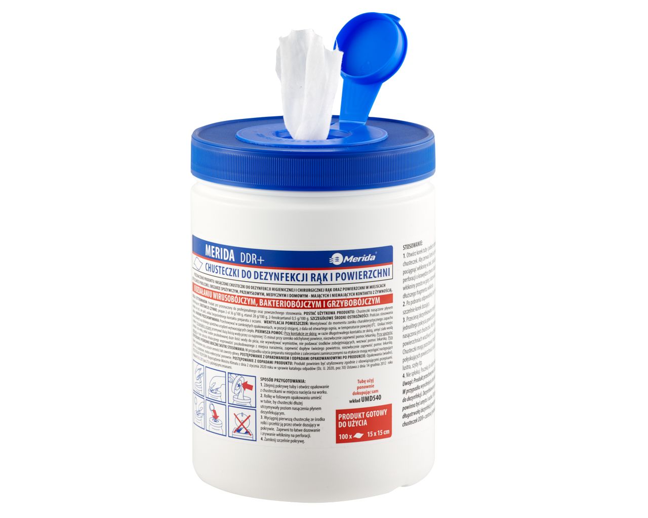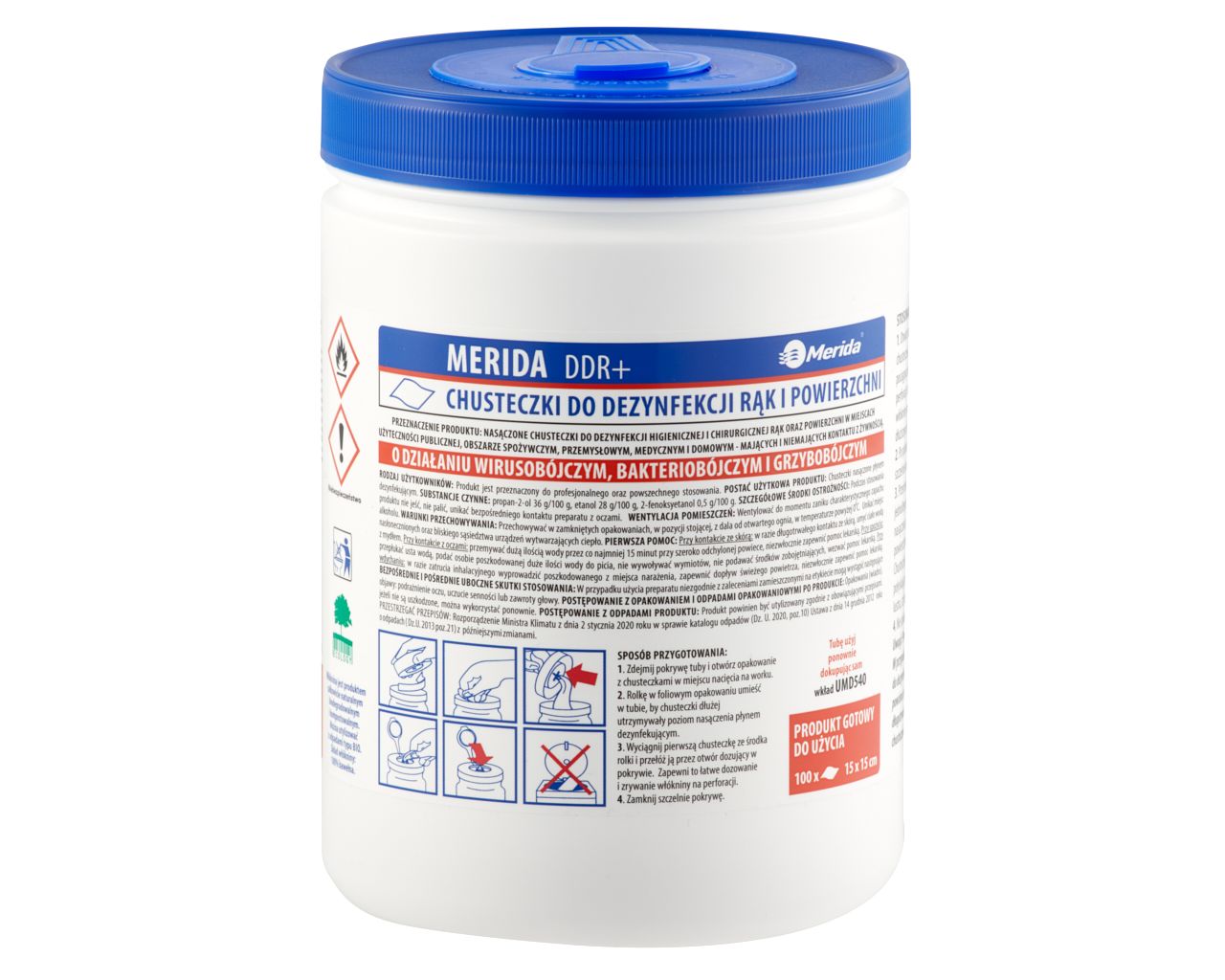 Chusteczki nasączone do chirurgicznej i higienicznej dezynfekcji rąk i powierzchni MERIDA POLANA DDR+tuba, rolka 15 m100 listków