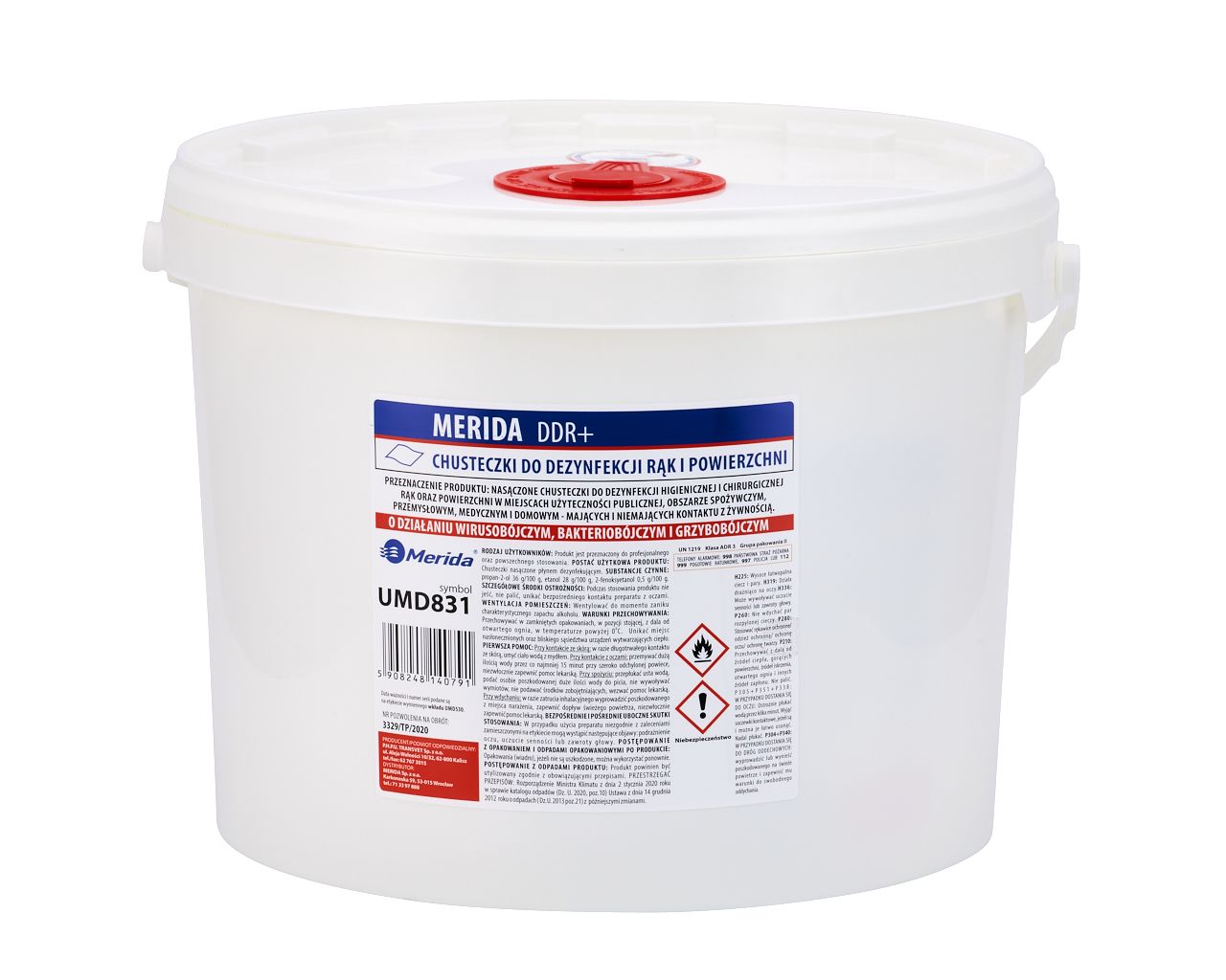 – chusteczki Merida POLANA DDR+ to produkt zawierający mieszaninę trzech substancji czynnych (etanol, izopropanol i fenoksyetanol), skutecznych w walce z grzybami, bakteriami i wirusami (pozwolenie na obrót produktem biobójczym nr 3329/TP/2020)