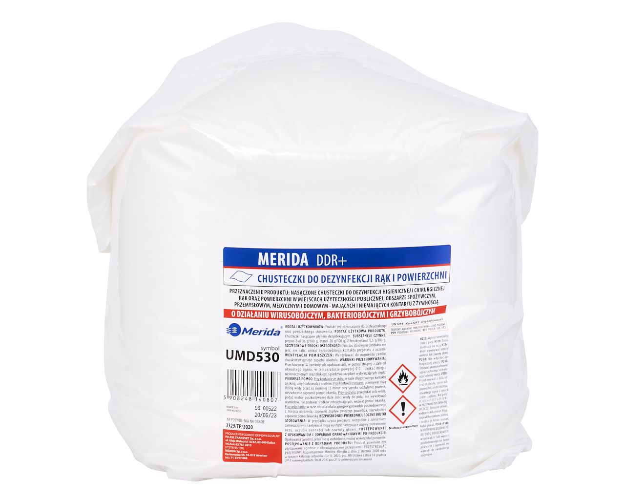 Chusteczki nasączone do chirurgicznej i higienicznej dezynfekcji rąk i powierzchni MERIDA POLANA DDR+wkład uzupełniający do wiadra 10 l, 122,36 m322 listki