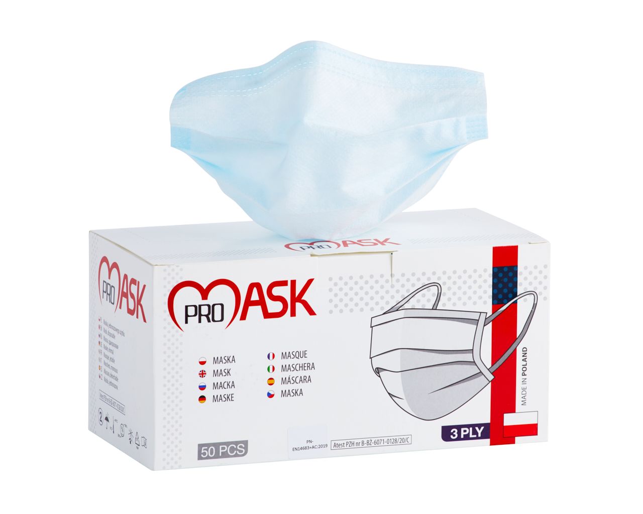 Maseczki medyczne jednorazowe z atestem 50 szt.