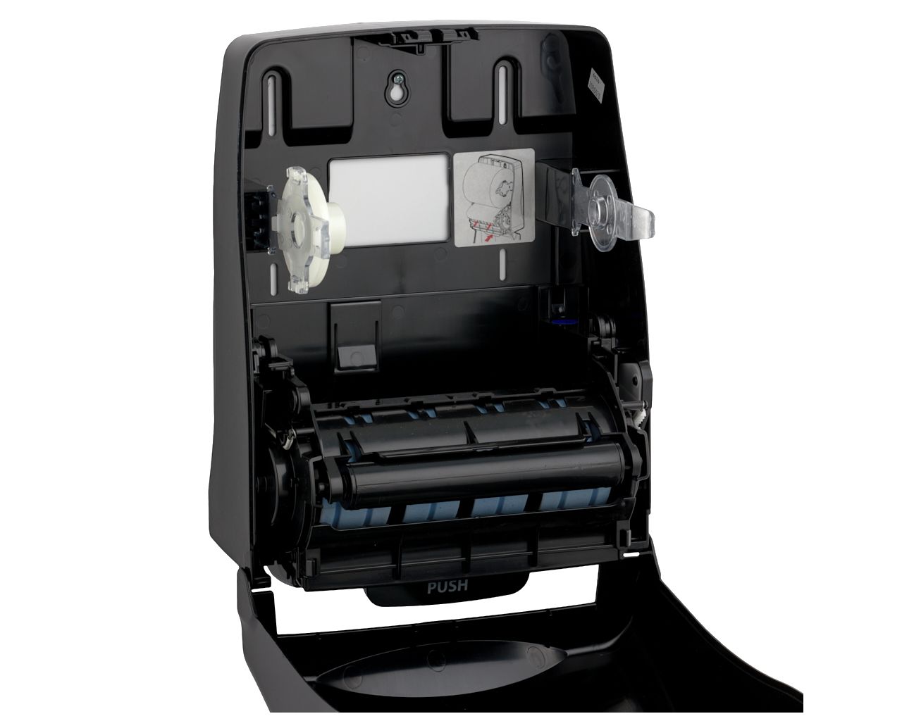 – w sytuacji awaryjnej ręcznik można wysunąć przez naciśnięcie dźwigni PUSH, znajdującej się w dolnej części podajnika