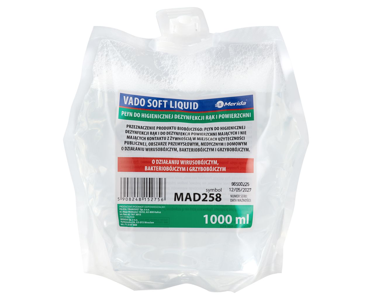 MERIDA VADO SOFT bezalkoholowy płyn do higienicznej dezynfekcji rąk i powierzchnijednorazowy wkład 1000 ml
