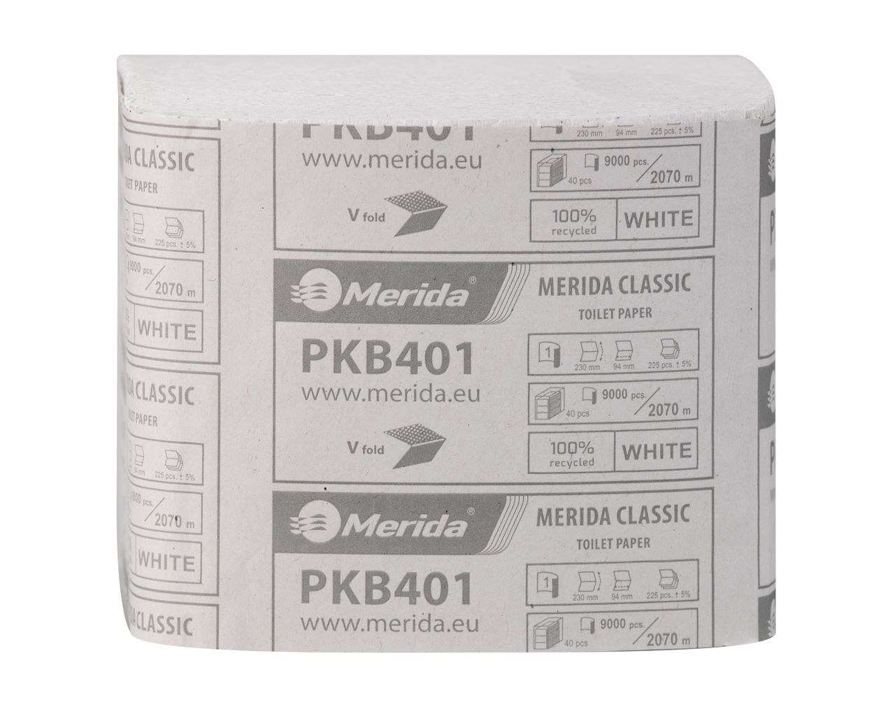 Papier toaletowy w listkachMERIDA CLASSIC ECOLABEL, jednowarstwowy, białykarton 9000 szt.