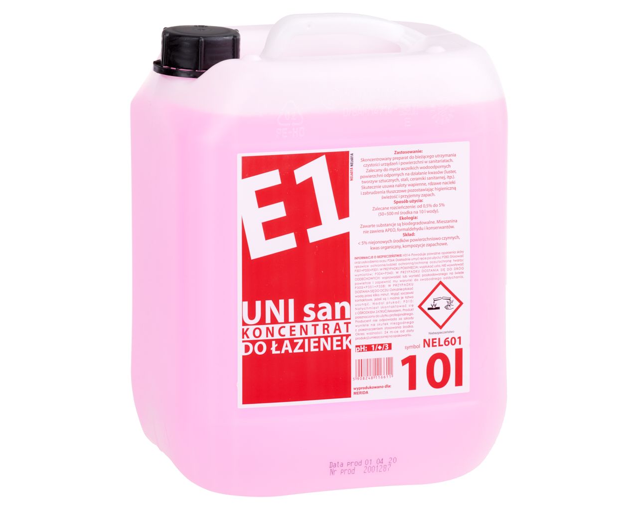 Płyn do mycia łazienek i urządzeń sanitarnychE1 UNI San, koncentratkanister 10l
