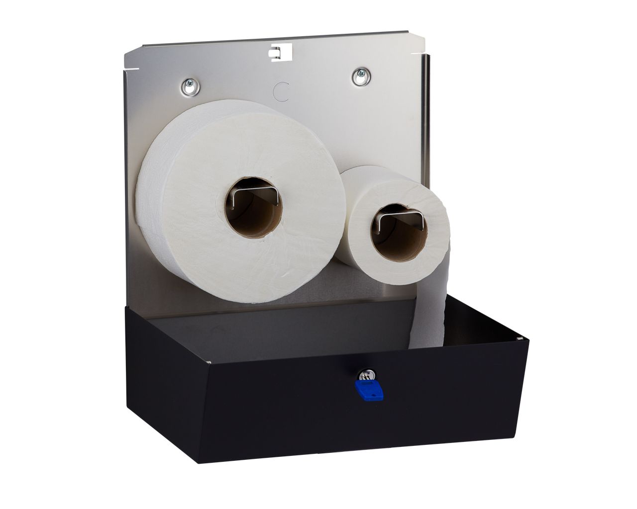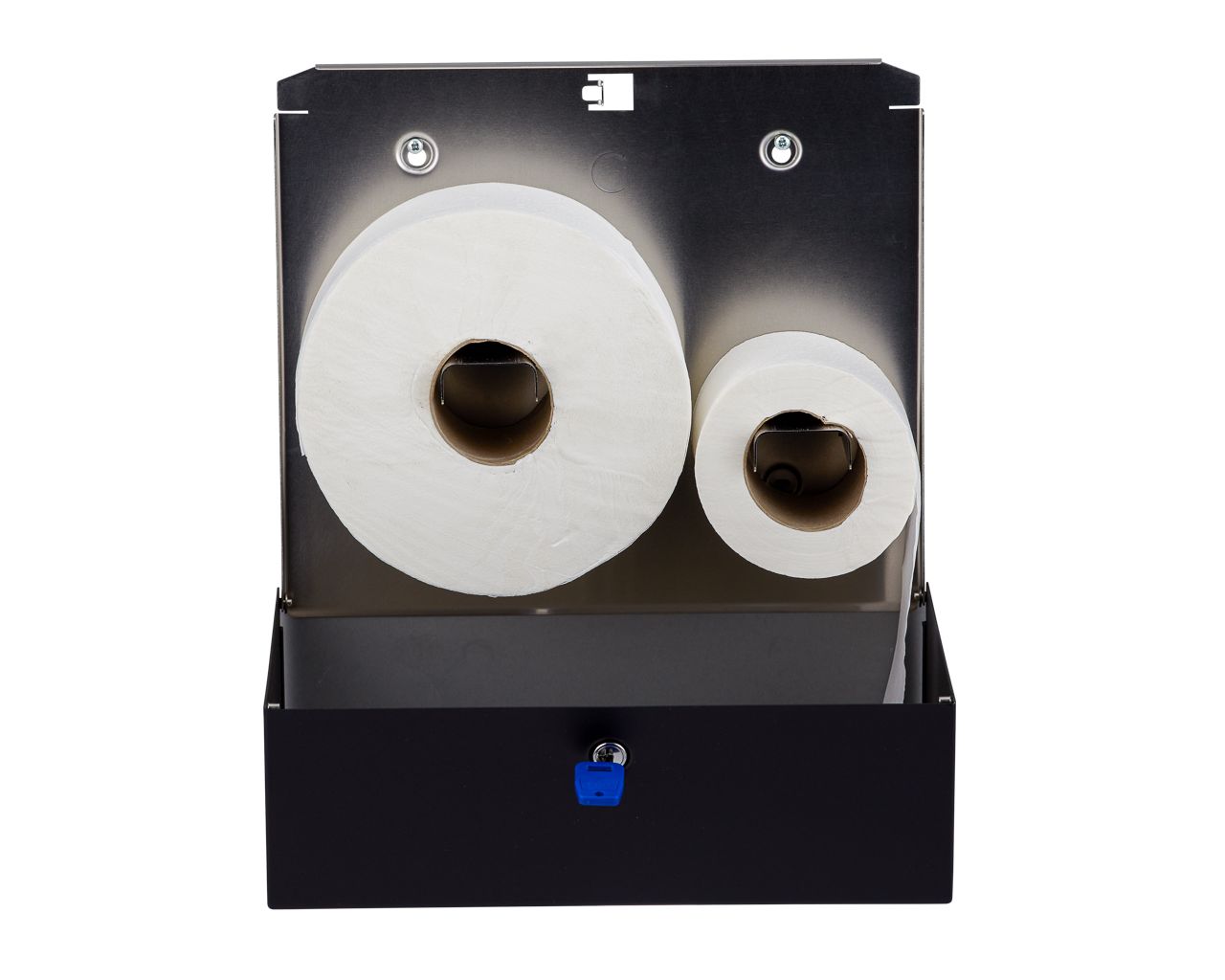 Pojemnik na papier toaletowy MERIDA STELLA DUO BLACK LINE z uchwytem na resztkę rolki papieruśrednica papieru do 20 cmczarny