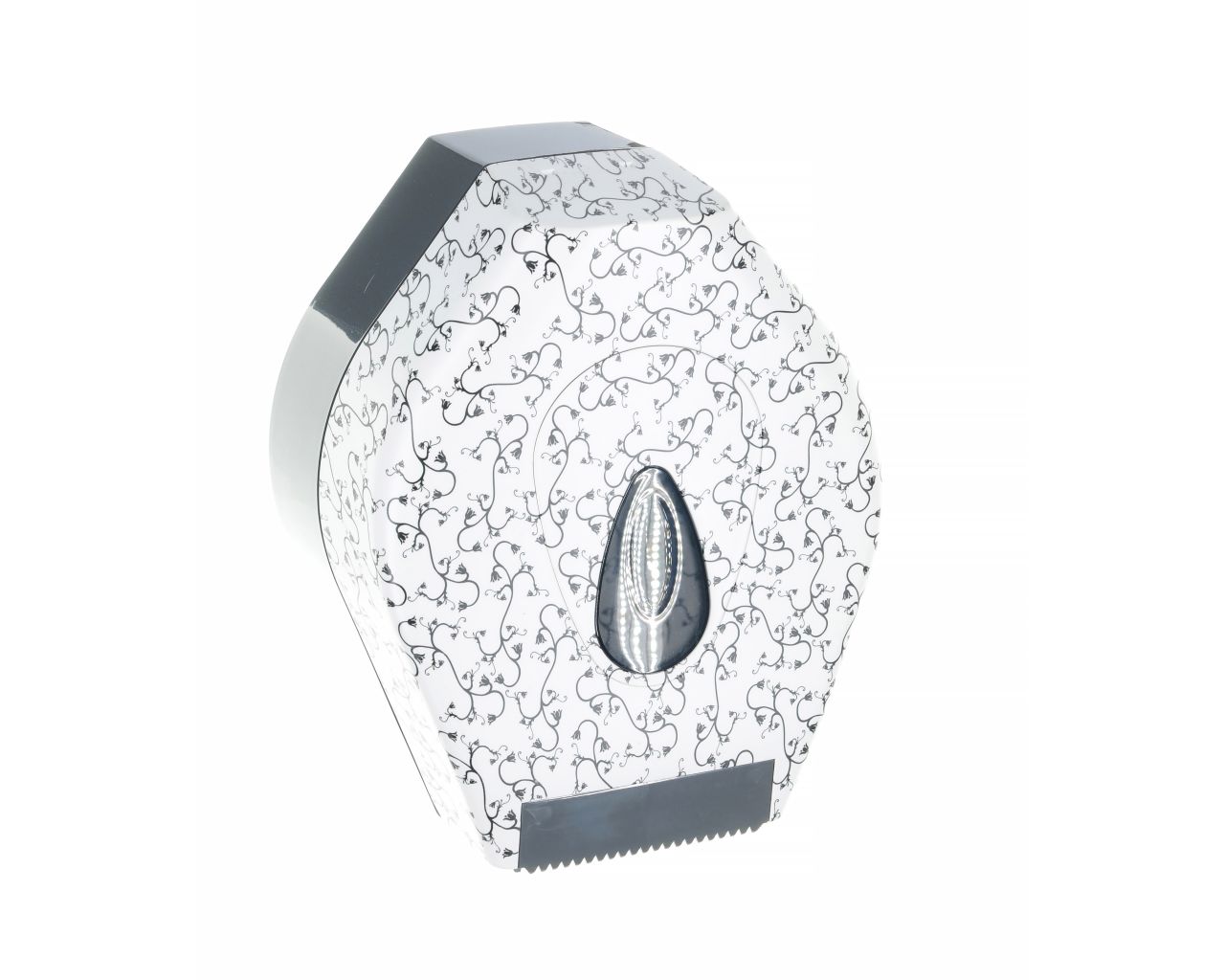 Pojemnik wykonany z wysokiej jakości tworzywa ABS. Odporny na działanie UV. Posiada ozdobne okienko w kolorze szarym, które umożliwia kontrolę ilości papieru w pojemniku. Można w nim stosować papier o maksymalnej średnicy roli 19 cm. Pojemnik zamykany na kluczyk.