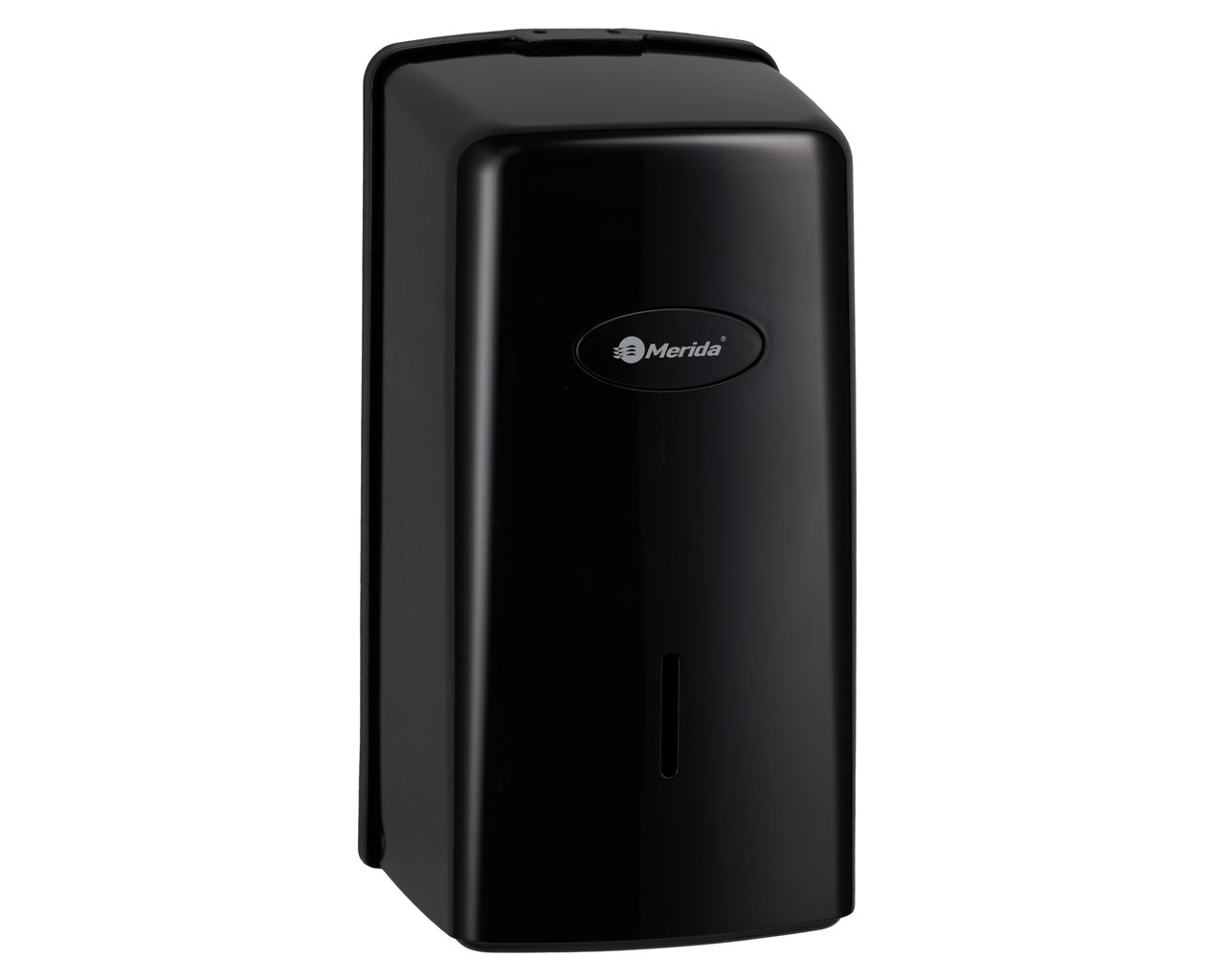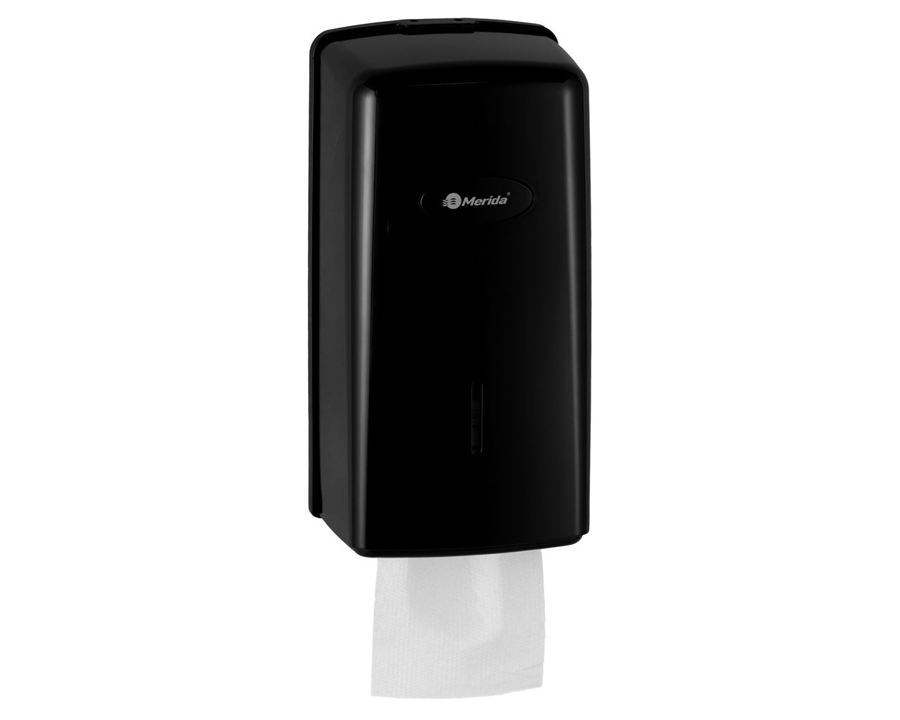 Pojemnik na papier toaletowy w listkachMERIDA ONE, pojemność do 450 szt., tworzywo ABSczarny