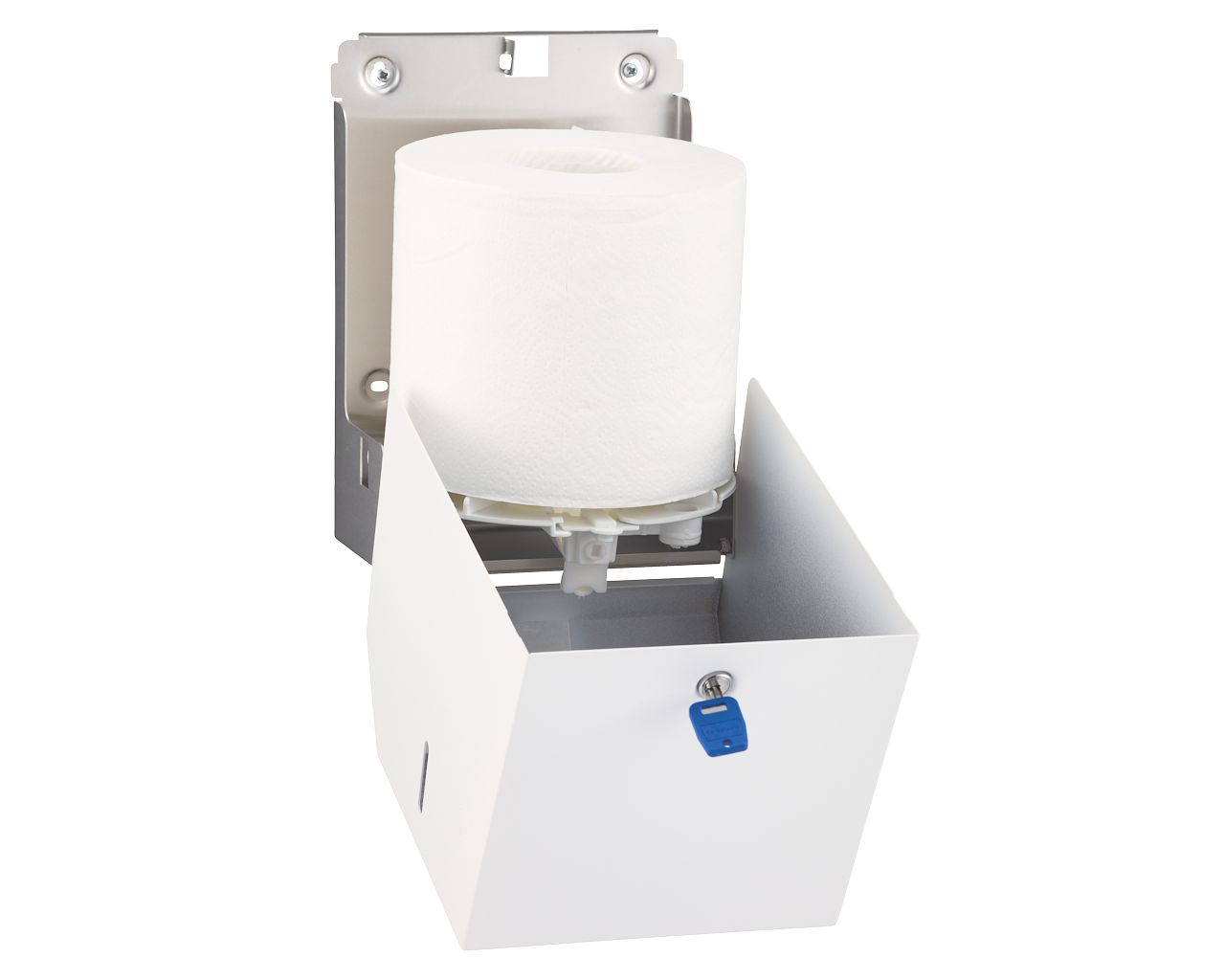 – wkładka dozująca może być wyjęta, co umożliwia pobranie ręcznika o dowolnej długości (w przypadku ręczników z perforacją)