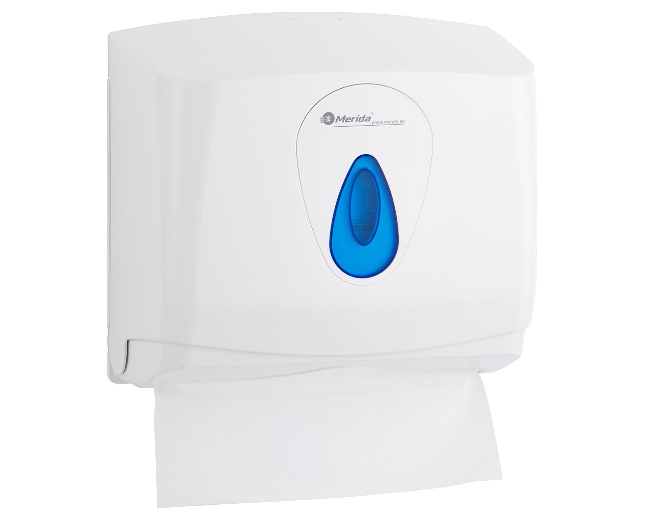 Mechaniczny podajnik ręczników papierowych w rolach MERIDA TOP AUTOMATIC MAXItworzywo ABS, biały połyskokienko niebieskieSymbol: CTN302295,00 zł