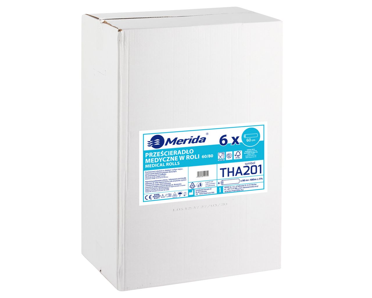 Prześcieradło medyczne w rolicelulozowe, dwuwarstwowe, szer. 60 cm, dł. 80 m, SUPER BIAŁEkarton 6 szt.