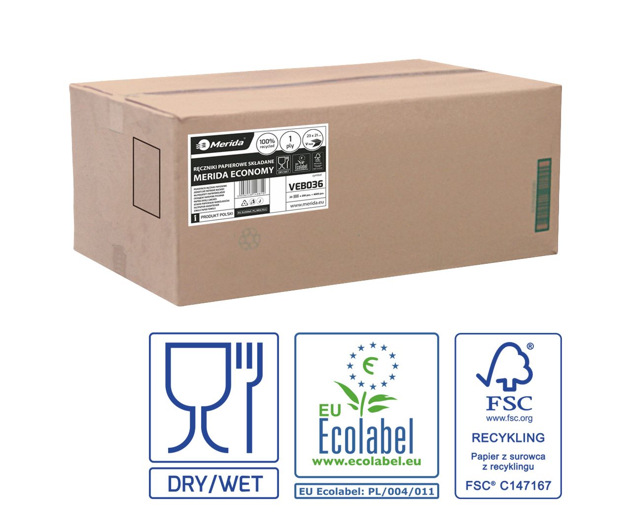 Ręczniki papierowe składane w VMERIDA ECONOMY ECOLABEL, jednowarstwowe, białekarton 4000 szt.