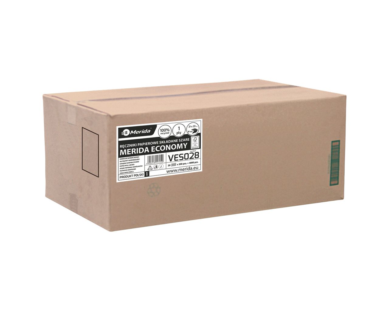 Ręczniki papierowe składane w VMERIDA ECONOMY, jednowarstwowe, szarekarton 4000 szt.