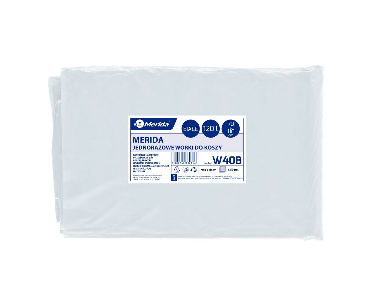 Worki na śmieci 120 lMERIDA CLASSIC, białe, 70×110 cmpaczka 50 szt.