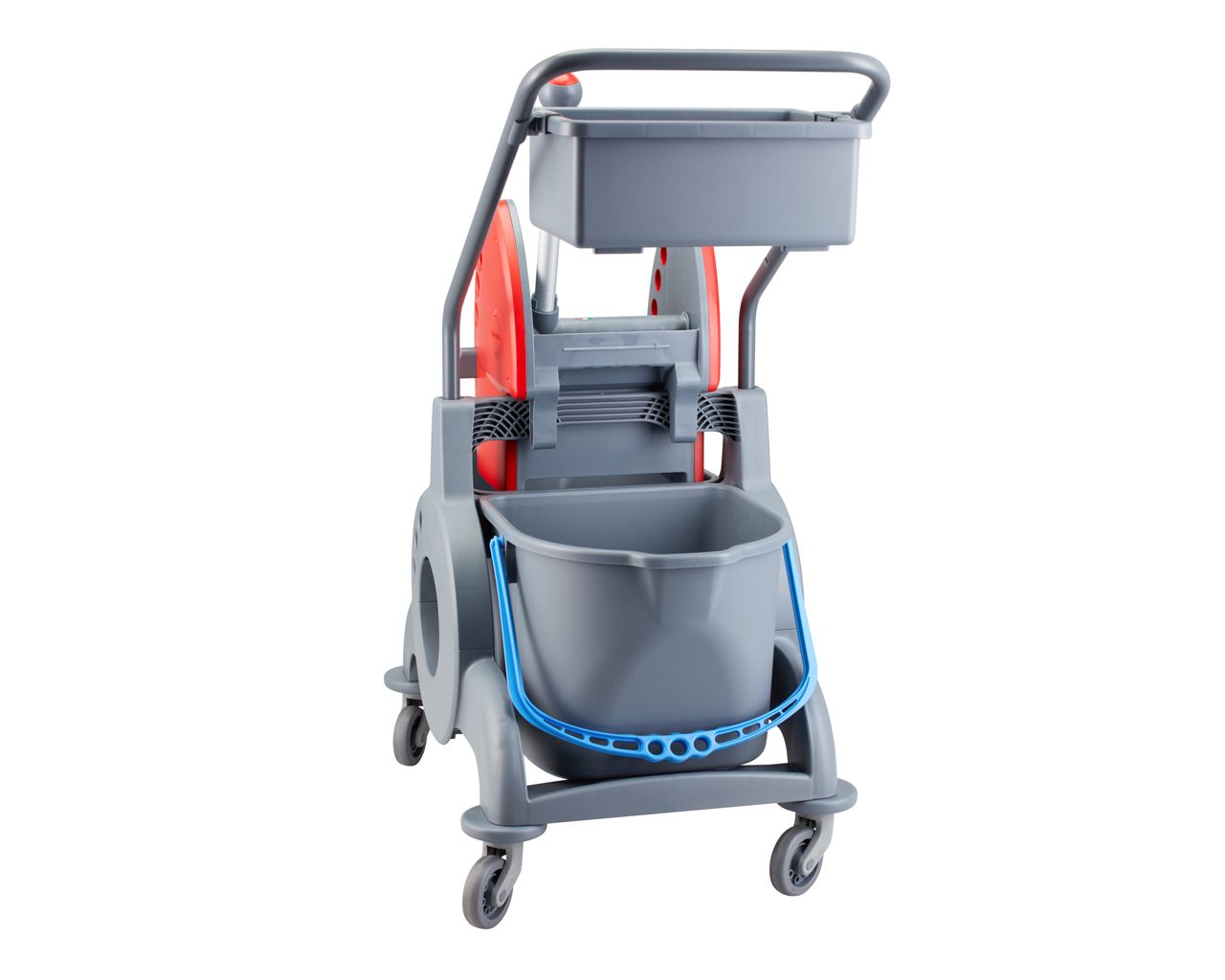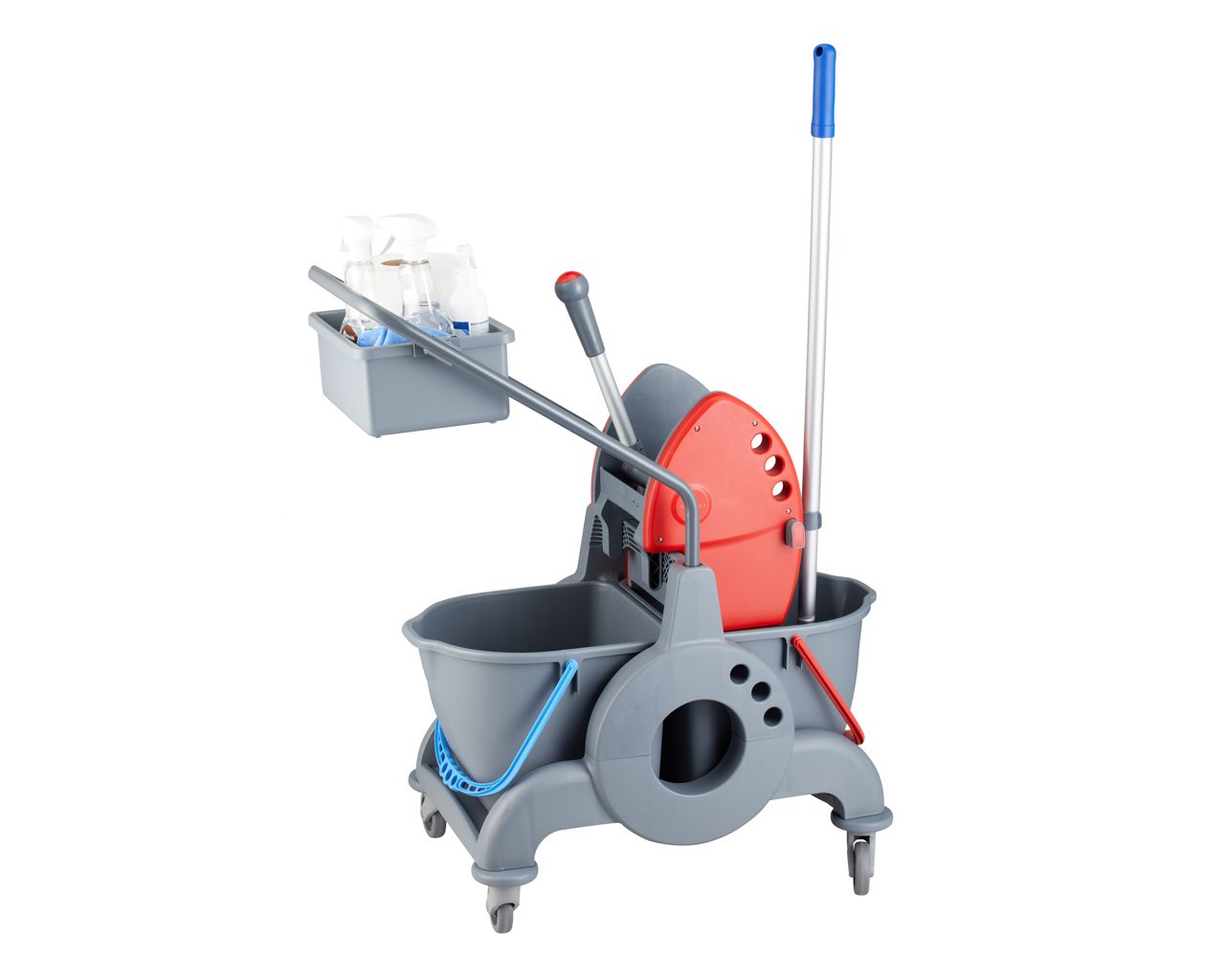 – wyposażony w dwa wiadra o pojemności 15 litrów i kuwetę o pojemności 8 litrów